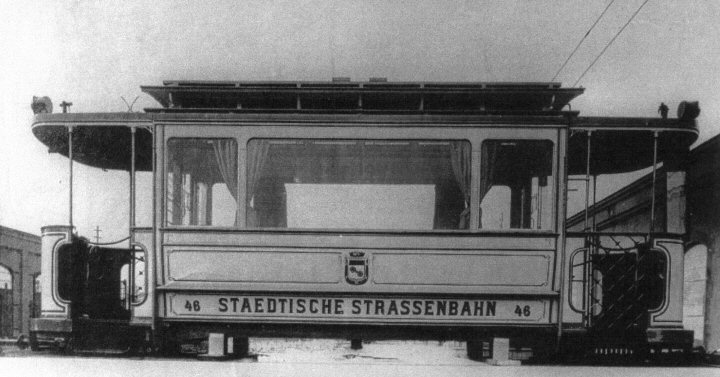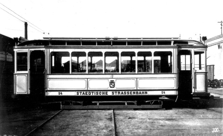 Triebwagen 54 am 12.09.1907 in Nürnberg beim Hersteller (Werksfoto MAN)