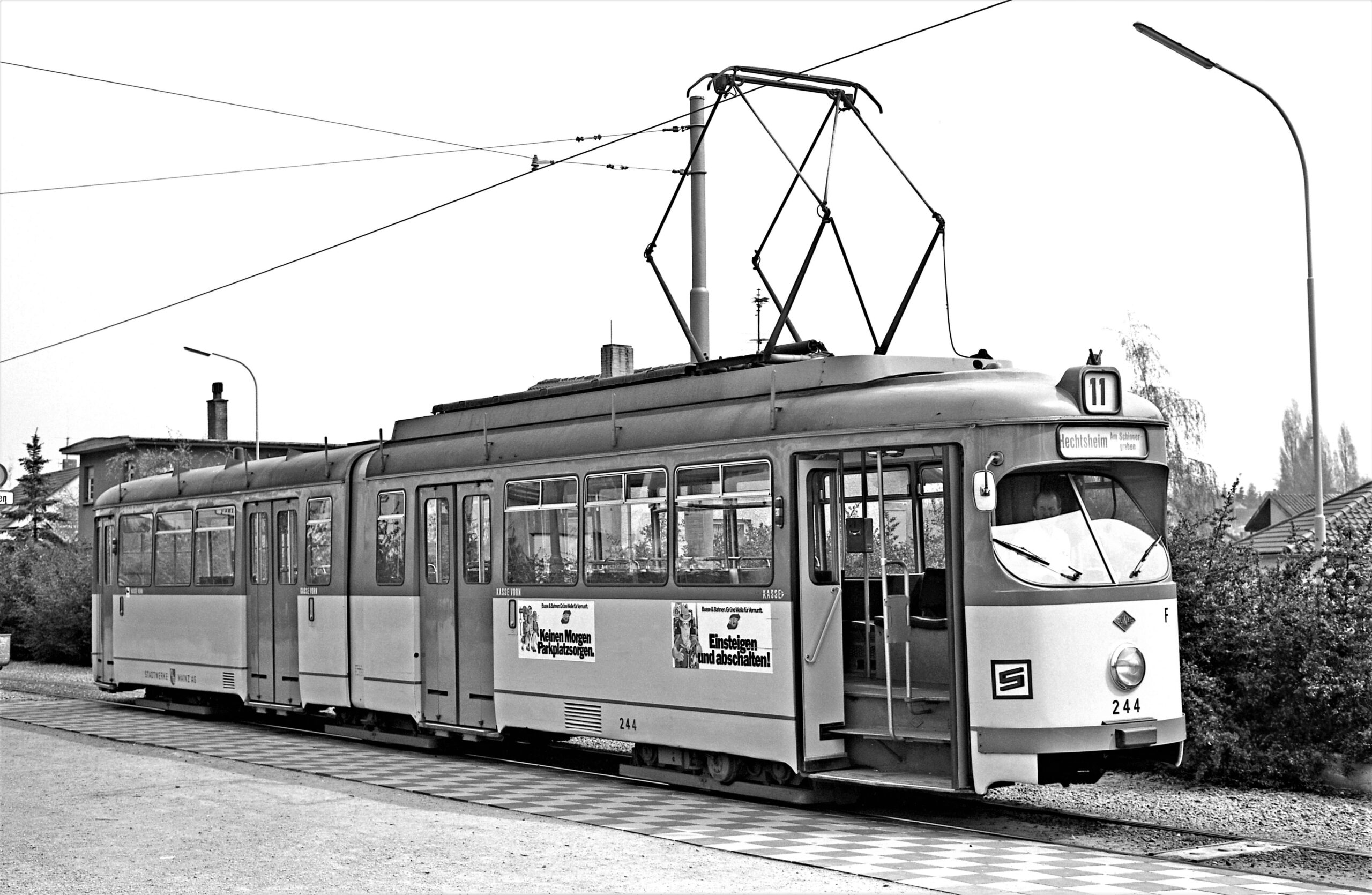 Kurz vor Fahrtbeginn, steht Triebwagen 244 an der Endhaltestelle Poststraße (Bild E. Frenz)
