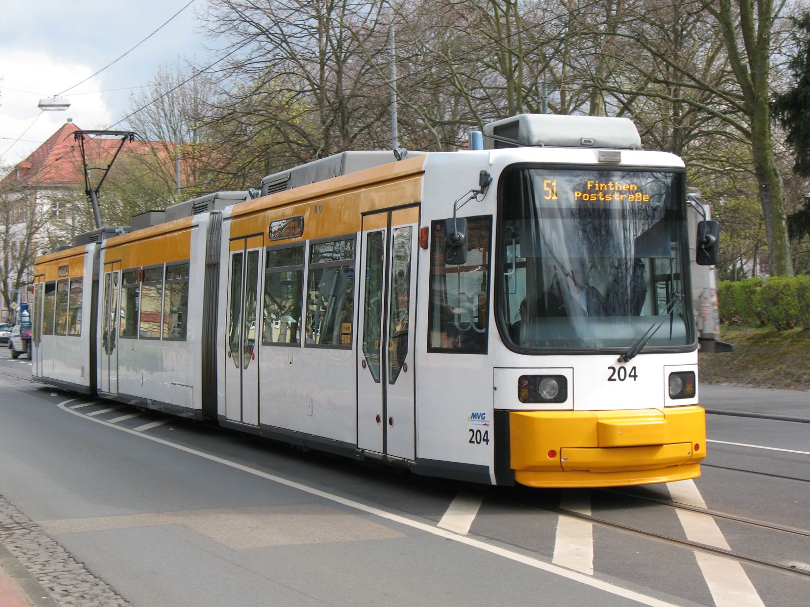 Triebwagen 204 in Gonsenheim kurz vor der Kapellenstraße im Jahr 2008 (Bild Florian Becker)